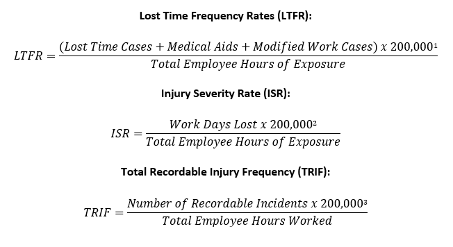 [1] 200,000 hours is an Industry Standard and represents the equivalent of 100 Employees working 1 full year. These statistics do not work effectively when the company’s Employee count is under 40 full time Employees.